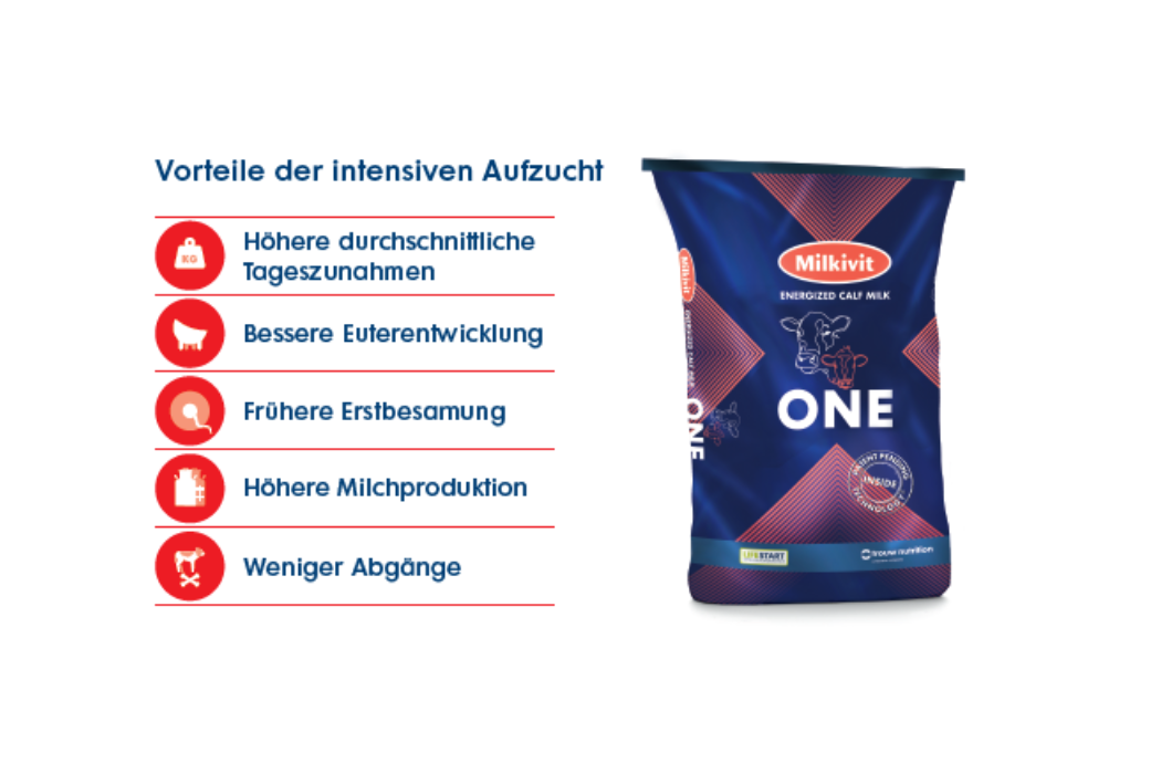 Unser energiereicher Milchaustauscher „Milkivit One“ vereint jahrelange LifeStart-Forschung und Entwicklung und setzt auf eine einzigartige Fettsäuretechnologie. Dieses Fettsäureprofil ist dem Fett in der Kuhmilch nachempfunden, um die Kälberentwicklung zu steigern und die Gesundheit zu verbessern.