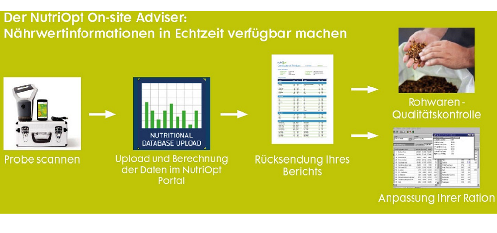 Die auf Inhaltsstoffen basierende, präzise Tierernährung und die stetige Qualitätskontrolle der verwendeten Rohstoffe ist ein wesentlicher Bestandteil Ihrer täglichen Arbeit im Futtermanagement. Um vorhandene Unsicherheiten zu vermeiden, liefert Ihnen der NutriOpt On-site Adviser schnell und einfach hochwertige Analyseergebnisse – im laufenden Betrieb. Nehmen Sie diese Echtzeit-Ergebnisse als Grundlage für eine regelmäßige Anpassung Ihrer Ration und verbessern Sie auf diese Weise die Leistung Ihres Betriebes.