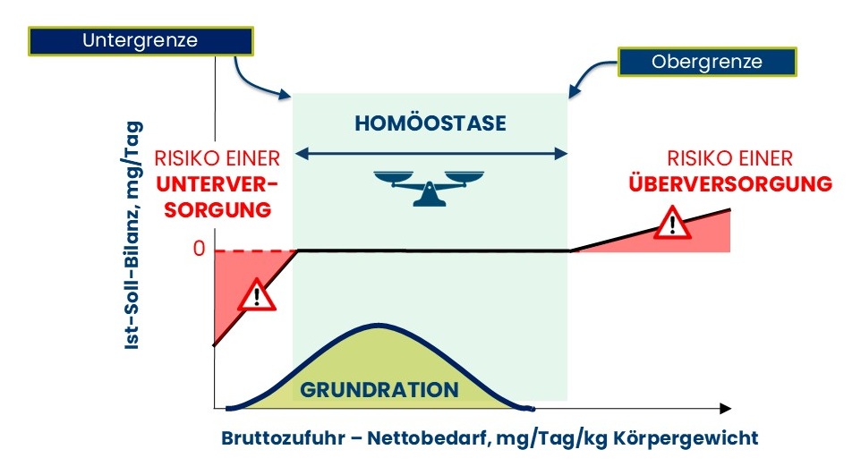 Eine Unterversorgung kann schwerwiegende Folgen haben, etwa Milchfieber oder Weidetetanie. Zwar ist das Risiko einer Toxizität bei einer Überversorgung meist geringer, doch kann sie dennoch relevante Störungen verursachen und sollte unbedingt vermieden werden. Eine übermäßige Zufuhr von Calcium kann zum Beispiel die Aufnahme wichtiger Spurenelemente wie Zink und Selen vermindern. Überschüsse an Phosphor können den Calciumstoffwechsel beeinträchtigen, und da Phosphor vom Tier nicht gespeichert werden kann, werden sie ausgeschieden, belasten so die Umwelt – und verursachen unnötige Kosten, ohne das Tier zu unterstützen.